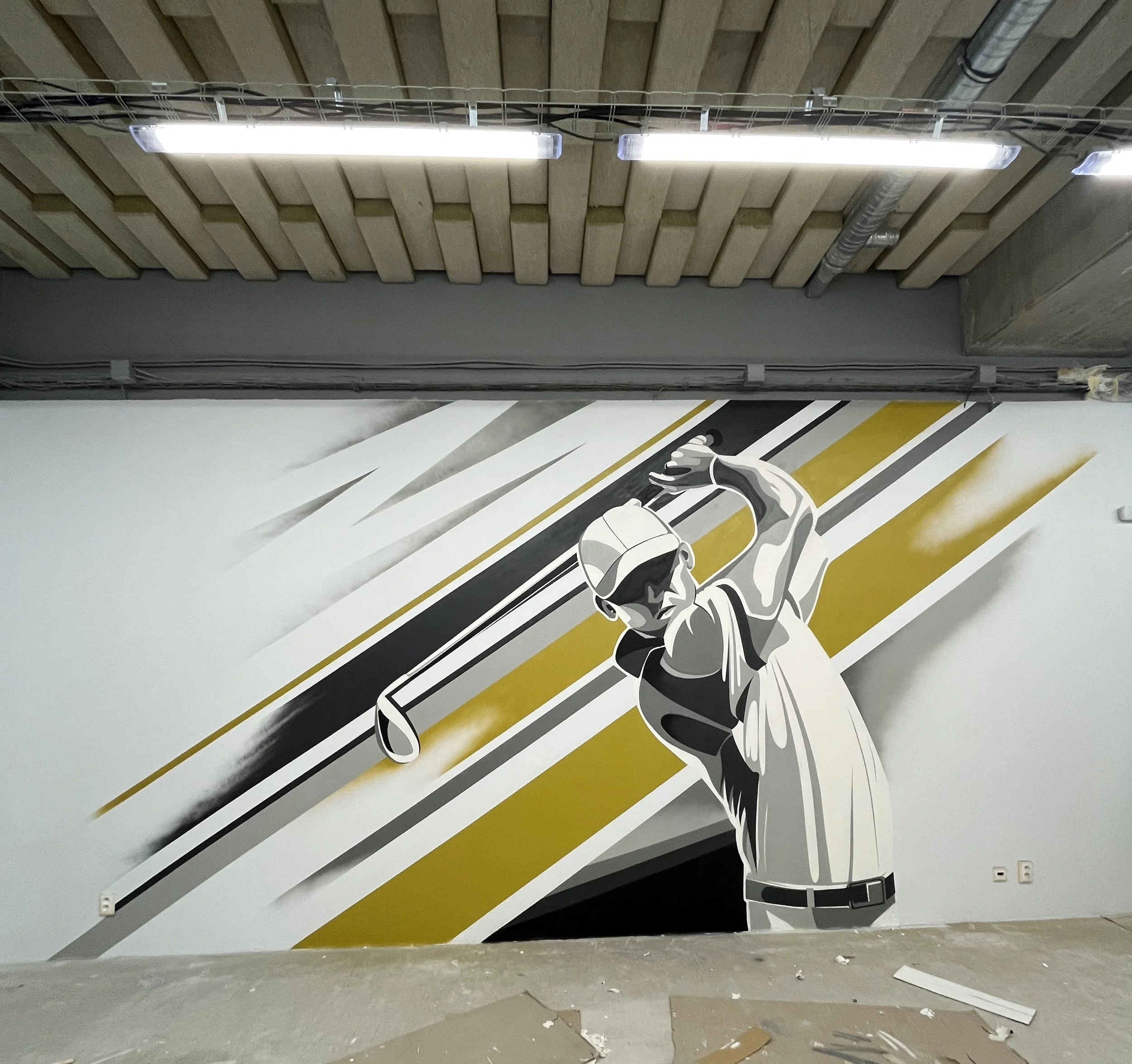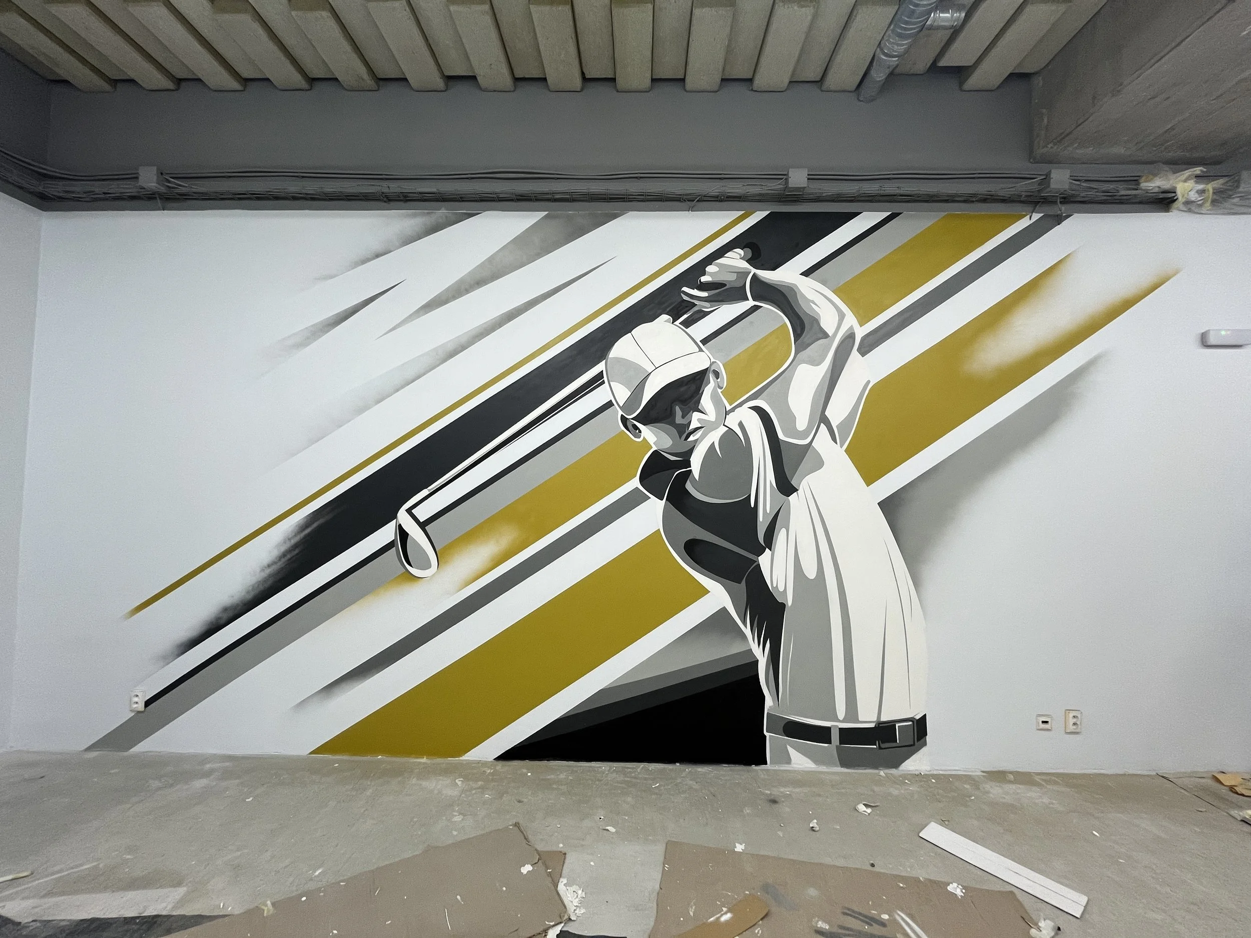 We were approached by a golf club for custom graffiti at their newly established training center. The theme was a golfer in their specific club colors. Here you can check out the result :-).